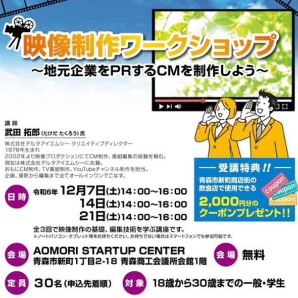 映像制作ワークショップのお知らせ 青森中央文化専門学校